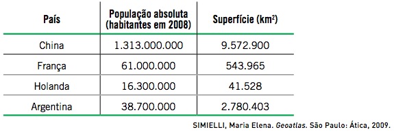 A proporção entre a população e a superfície territorial é um dos elementos que define a relação entre