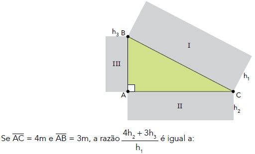 Na figura a seguir, estão representados o triângulo retângulo ABC e os retângulos semelhantes I, II e III, de alturas h1, h2 e h3 respectivamente proporcionais às bases BC , AC e AB.
