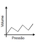 O processo contínuo da respiração consiste na expansão e contração de músculos da caixa torácica. Sendo um sistema aberto, quando a pressão intra-alveolar é menor que a atmosférica, ocorre a entrada do ar e os pulmões expandem-se. Após as trocas gasosas, a pressão intra-alveolar aumenta, ficando maior que atmosférica. Assim, com a contração da caixa torácica, os gases são expirados. Considerando a temperatura interna do corpo humano constante e igual a 37,5 oC, o gráfico que representa os eventos descritos é:
