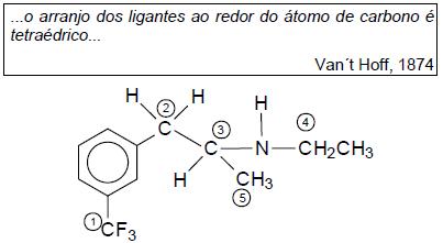 Dos carbonos numerados na molécula representada, qual deles corresponde a um carbono assimétrico?