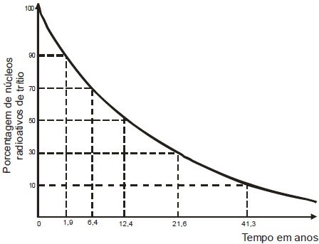 Tendo em vista essas informações, calcule a idade de uma amostra de água retirada de um lençol freático, cuja concentração de hélio triogênico é três vezes maior que a quantidade de trítio. (5,0 pontos)