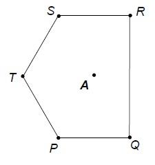 A empresa pretende colocar uma torre de comunicação, localizada no ponto A, indicado na figura, que seja equidistante dos vértices do polígono, indicados por P, Q, R, S e T, onde serão instalados os equipamentos de segurança. Sabe-se que o lado RQ desse polígono mede 3.000 m e as medidas dos outros lados são todas iguais à distância do ponto A aos vértices do polígono. Calcule a distância do ponto A, onde será instalada a torre, aos vértices do polígono. (5,0 pontos)