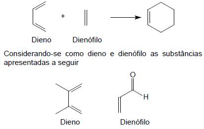 A reação de Diels-Alder é uma reação de adição 1,4 entre um dieno e um dienófilo, conforme equação química abaixo: