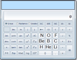 Nessa calculadora, se o estudante adicionar o elemento de menor número atômico com o de maior eletronegatividade, elevar a soma ao elemento cujo número atômico seja um número primo par e, em seguida, calcular o logaritmo do resultado, acionando a tecla log, o resultado final será um dígito, cuja tecla corresponde ao símbolo