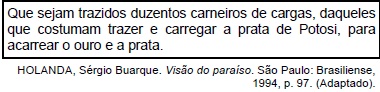 O fragmento apresentado, de 1609, destaca uma das medidas tomadas por D. Francisco de Sousa, governador-geral do Brasil, para intensificar a busca por metais e pedras preciosas no interior do território. Nesse documento, o imaginário colonial português se constitui pela influência