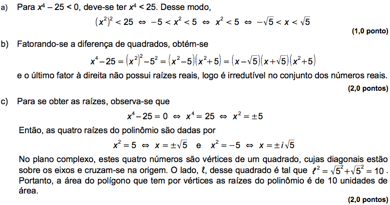 Com base no polinômio p(x) = x4 – 25,