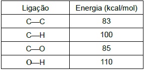 A tabela a seguir apresenta os valores de energia de ligação para determinadas ligações químicas.