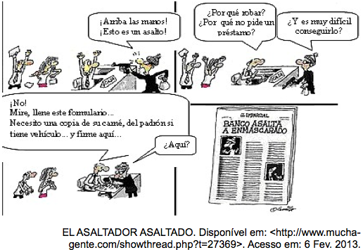 Al final de la historieta se destaca el titular de un periódico. Ese titular recoge lo expuesto en las otras viñetas ya que en ellas se plasma la capacidad de algunos bancos para