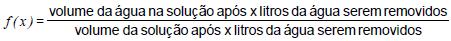 100 litros de uma solução contêm inicialmente 75% de álcool e 25% de água. Indiquemos por f(x) a concentração de água nessa solução após x litros da água serem removidos, isto é,