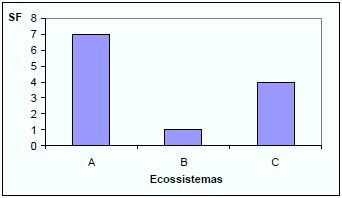Identifique qual dos três ecossistemas corresponde a um deserto, explicando a relação entre a SF e as características ambientais deste ecossistema.