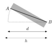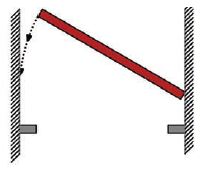 Uma prateleira de um metro de comprimento e 4,4 cm de espessura deve ser encaixada entre duas paredes planas e paralelas. Por razões operacionais, a prateleira deve ser colocada enviesada (inclinada), para depois ser girada até a posição final, como indica a figura.