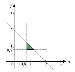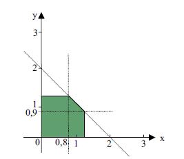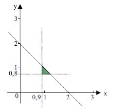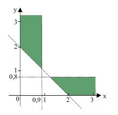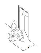 Uma pessoa em cadeira de rodas necessita de espaço mínimo para a rotação da sua cadeira em um corredor que dá acesso a uma porta. De acordo com as normas técnicas da obra, a largura mínima (x) do corredor deve ser de 90 cm, a da porta (y) de 80 cm e, além disso, é necessário que a soma dessas duas medidas seja igual ou maior que 2 m.