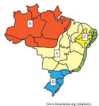 As áreas de abrangência no mapa do Brasil dos dois tipos climáticos destacados no texto correspondem, respectivamente,