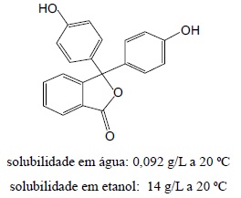 seu principal uso é como indicador ácido-base. A seguir, são apresentadas a fórmula estrutural da fenolftaleína e algumas informações sobre sua solubilidade.