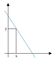 O gráfico mostra um retângulo localizado no primeiro quadrante de um plano cartesiano, com dois lados sobre os eixos de coordenadas e um vértice na reta de equação y = – 4x + 5.