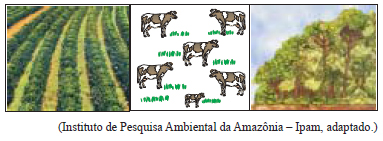 Na Amazônia, segundo o Instituto Nacional de Pesquisas Espaciais (INPE), nos últimos quinze anos foram desmatados 243.393 km², o que representa 5% da área total da Amazônia Legal. Observe os três quadros, que representam três etapas do processo de ocupação da Amazônia.