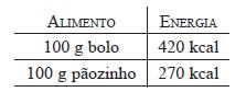 Após determinar a quantidade em gramas de cada pedaço de bolo e de cada pãozinho, use a tabela e calcule o total de quilocalorias (kcal) consumido pela pessoa, com esses dois alimentos, no café da manhã de segunda-feira.