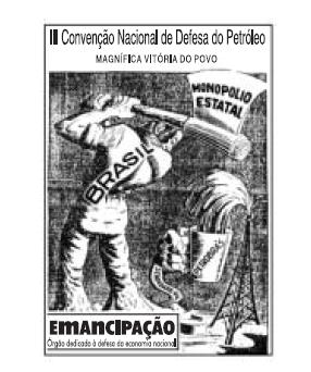 A figura expressa a campanha “o petróleo é nosso”, que agitou a política brasileira no início dos anos cinqüenta do século passado.