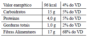 Um produto A apresenta, para uma porção de 40 gramas, a seguinte tabela nutricional: