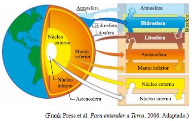 A figura apresenta os componentes do sistema Terra e suas intrínsecas interações e combinações.