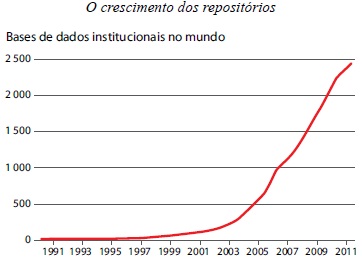 A revista Pesquisa Fapesp, na edição de novembro de 2012, publicou o artigo intitulado Conhecimento Livre, que trata dos repositórios de artigos científicos disponibilizados gratuitamente aos interessados, por meio eletrônico. Nesse artigo, há um gráfico que mostra o crescimento do número dos repositórios institucionais no mundo, entre os anos de 1991 e 2011.