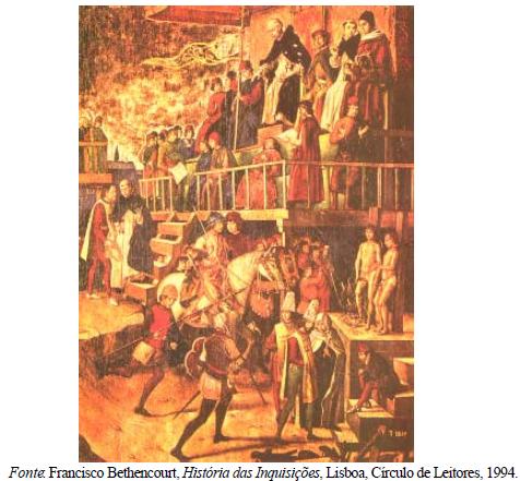 a) Identifique, na imagem, os personagens que participam de uma cerimônia pública da Inquisição.