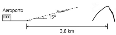 Ao decolar, um avião deixa o solo com um ângulo constante de 15º. A 3,8 km da cabeceira da pista existe um morro íngreme. A figura abaixo ilustra a decolagem, fora de escala.