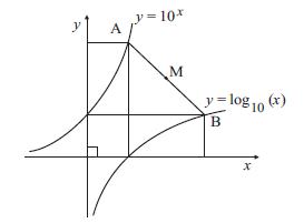 Considere os gráficos das funções definidas por f(x) = log10 (x) e g(x) = 10x, conforme figura (fora de escala).