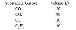 Considere recipientes com os seguintes volumes de substâncias gasosas, nas mesmas condições de pressão e temperatura.