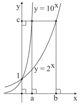 A figura refere-se a um sistema cartesiano ortogonal em que os pontos de coordenadas (a, c) e (b, c), com a = pertencem aos gráficos de y = 10x e y = 2x, respectivamente.
