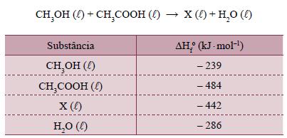 Considere a reação orgânica representada na equação e os valores de entalpia-padrão de formação (ΔHfo) das substâncias participantes da reação.