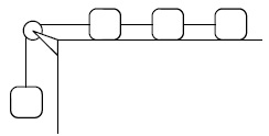 A figura mostra um sistema constituído por quatro blocos idênticos de massa M. Os blocos estão unidos por fios inextensíveis de massa desprezível. A massa da polia e o atrito entre os blocos e a mesa são desprezíveis. É correto afirmar que a aceleração do sistema escrita em função da aceleração gravitacional, g, é
