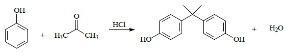 Nos últimos tempos os pesquisadores tem discutido muito sobre o risco dos plásticos a saúde e ao meio ambiente. O vilão do momento é o bisfenol A (BPA). Este composto químico é largamente utilizado em utensílios tais como: mamadeiras, garrafas de água mineral, selantes dentários, latas de conserva, tubos para água, CDs e DVDs etc. Estes materiais ao sofrerem a ação de processos físicos ou químicos, liberam bisfenol A em alimentos, em bebidas e no ambiente (Ciência Hoje, No 292, Vol. 49, maio de 2012). Com relação a reação de obtenção do bisfenol A, as funções orgânicas envolvidas respectivamente são