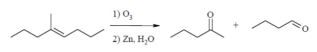 A ozonólise foi uma reação utilizada por muito tempo para localizar a posição de uma ligação dupla em uma molécula insaturada. Os produtos da reação são compostos carbonilados, que podem ser facilmente identificados. Abaixo, tem-se a representação de uma reação de ozonólise de um alceno