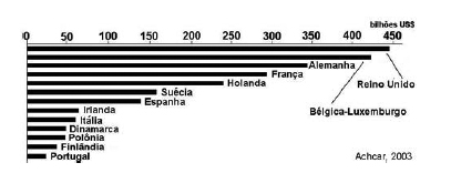 II - à Península Ibérica foi menor que 250 bilhões de dólares em função de sua distância dos centros financeiros europeus.