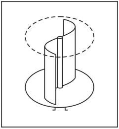 Um pequeno cata-vento do tipo Savonius, como o esquematizado na figura ao lado, acoplado a uma bomba d'água, é utilizado em uma propriedade rural. A potência útil P (W) desse sistema para bombeamento de água pode ser obtida pela expressão P = 0,1 x A x v3, em que A (m2) é a área total das pás do cata-vento e v (m/s), a velocidade do vento. Considerando um cata-vento com área total das pás de 2 m2, velocidade do vento de 5 m/s e a água sendo elevada de 7,5 m na vertical, calcule